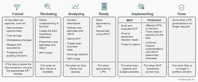 - Ready: go decisions for business Epics and solutions require business leader approval